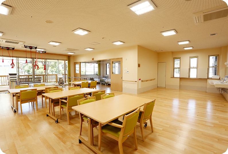 特にリハビリに力を入れており、高齢者の方の介護予防運動に必要なプログラムをご提案し健康的に過ごせる日々のお手伝いを致します。