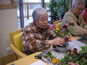 住宅ひらきでは、昨年の12月28日に、正月の生け花をしました。皆さん上手に活けられ、完成後は、住宅ひらきやデイサービスの玄関等に飾りました。