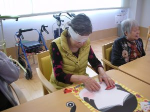 また、1月3日には住宅ひらきで福笑いを行いました。皆さん楽しそうにされていて、楽しい集いとなりました。華やかで楽しいお正月を迎えることができました。
